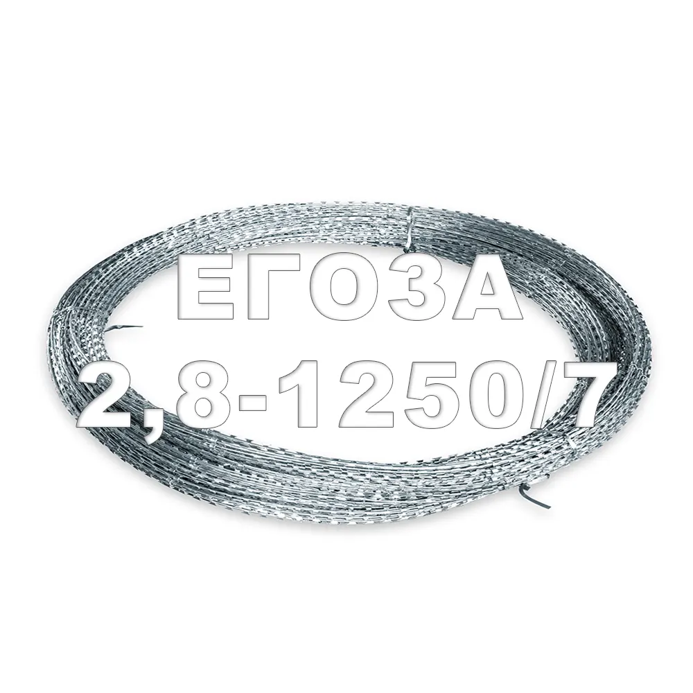 Заграждение из армированной колючей ленты спиральное ЗАКЛ-С «Егоза-2,8-1250/7» предназначено для установки на заборы, строения, конструкции и просто по поверхности земли. Заграждение имеет диаметр витка 1250 мм с семью монтажными скобами на виток спирали и изготовлено из армированной колючей ленты ЛКА «Егоза-2,8» с диаметром сердечника 2,8 мм и толщиной лезвий 0,5 мм. Заграждение изготовлено из высокоуглеродистой проволоки и рулонной стали с цинковым покрытием, гарантирующим длительный срок службы заграждения.