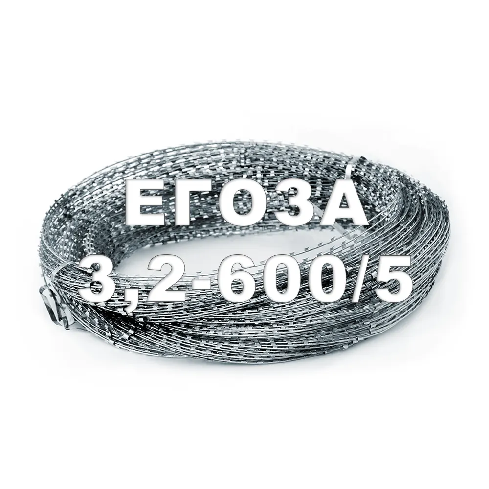 Заграждение из армированной колючей ленты спиральное ЗАКЛ-С «Егоза-3,2-600/5» предназначено для установки на заборы и другие строения. Заграждение имеет диаметр витка 600 мм с пятью монтажными скобами на виток спирали и изготовлено из колючей проволоки ЛКА «Егоза-3,2» с диаметром сердечника 3,2 мм и толщиной лезвий 0,55 мм. Заграждение изготовлено из качественной оцинкованной стали и пружинной проволоки, покрытых горячим цинкованием для защиты от коррозии.